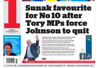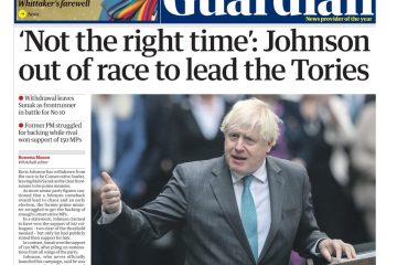 2022-10-24 Guardian Front Page 24th of October 2022The Guardian reports Boris Johnson’s shock withdrawal from the Tory leadership race. By FindSales, 3 yearsOctober 23, 2022 ago