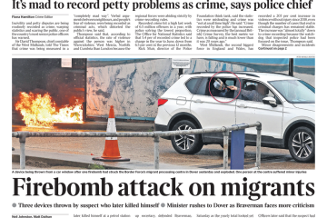 The Dover migrant processing center firebomb attack is covered by The Times.