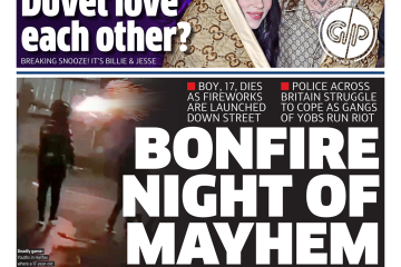 In towns and cities across Britain, police and teenagers engaged in a “bonfire night of mayhem” that led to the death of a 17-year-old boy.
