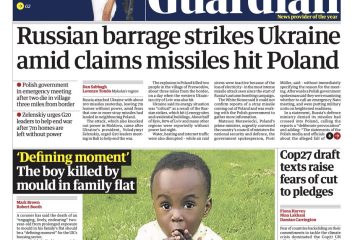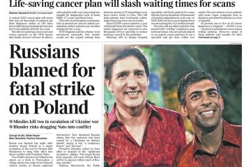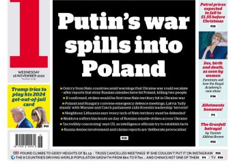 The Telegraph’s front page covers the possible Russian missile strikes on Poland, along with a statement by Ukraine President Volodymyr Zelenskyy.