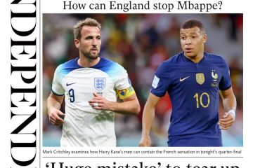 The Daily Mirror is dominated by England’s crunch World Cup match against France.