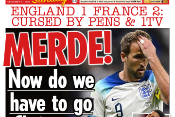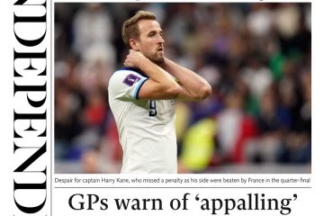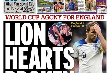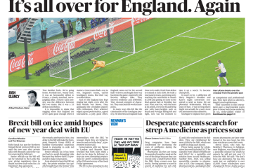 The front page of Sunday Mirror shows England’s World Cup agony.