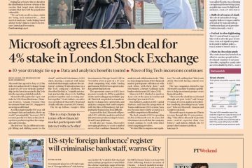 FT reports that Microsoft has agreed to buy a 4% stake in London Stock Exchange Group for $1.5 billion (£1.22 billion).