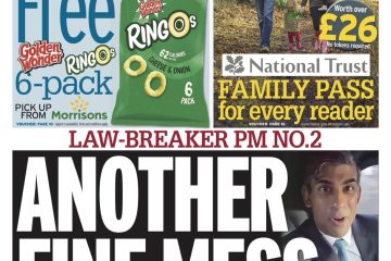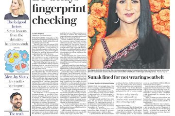 Police have fined Rishi Sunak for not wearing a seatbelt following his previous fixed penalty notice over Partygate last year, with the Mirror branding him a “serial lawbreaker”.
