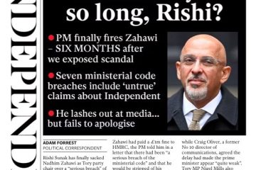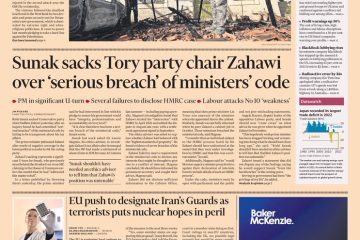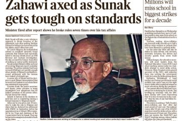 After the PM sacked Nadhim Zahawi for his run-in with HMRC, the Daily Mirror claims the Conservative Party is “engulfed by sleaze”.