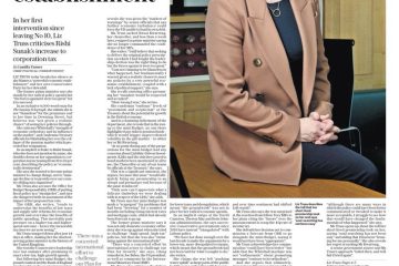 In the Sunday Telegraph, former Prime Minister Liz Truss accuses the “left-wing economic establishment” of her downfall after resigning from Downing Street.