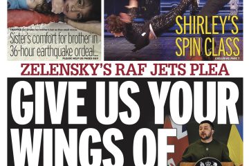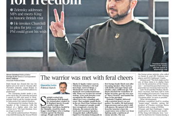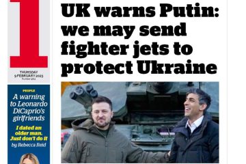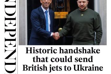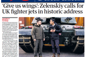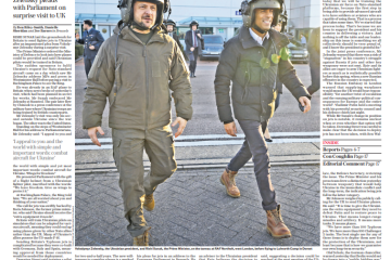 There is an image of Rishi Sunak and Volodymyr Zelenskyy leaving an RAF base in west London in the Daily Telegraph.
