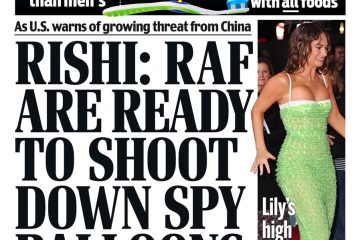 As Rishi Sunak faces pressure to take a harder line against China, the Daily Mail splashes on signals from the RAF that they are ready to shoot down spy balloons.