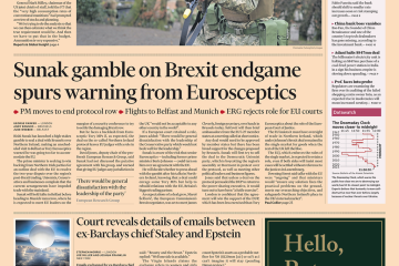 Rishi Sunak tries to convince the DUP to back his Brexit proposal in the Daily Telegraph.