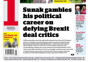 The Times reports that Rishi Sunak has appealed to Tory MPs to back him to “get Brexit done”, promising to push ahead with or without the DUP’s support.