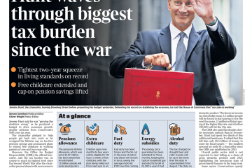 In his budget, Chancellor Jeremy Hunt leaves the UK with the “largest tax burden since the war” and the “tightest two-year squeeze on living standards on records”.