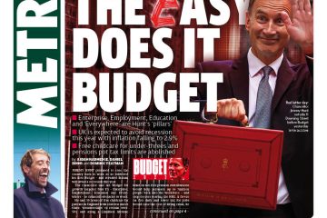 The Metro calls today’s budget announcement the “easy does it budget,” noting that inflation is expected to fall to 2.9% in the UK this year.