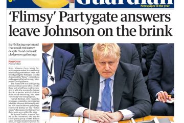 According to the Guardian, Boris Johnson’s “flimsy” partygate answers have put his political career at risk.