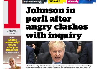 Boris Johnson’s appearance before the privileges committee is cited by the i as one that leaves the former prime minister’s political future “in peril”.