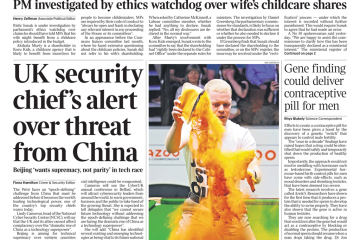 A UK security chief warns of a “epoch-defining” challenge from China in the Times.