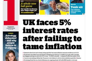The Daily Mirror reports the worsening cost of living crisis, with certain food prices increasing seven times faster than wages.