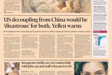 The Financial Times features US Treasury Secretary Janet Yellen’s caution against decoupling from China, emphasizing that national security measures aren’t intended to “stifle” its economy.