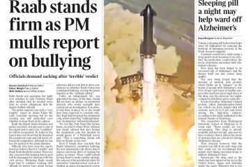 The Daily Telegraph highlights Dominic Raab’s determination to keep his Cabinet position as it’s threatened by a bullying report submitted to the prime minister.