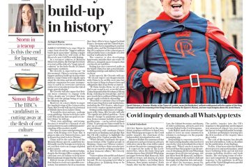 Daily Telegraph reports Foreign Secretary James Cleverly to urge China to reveal details about its “biggest peacetime military build-up.”