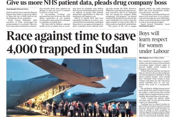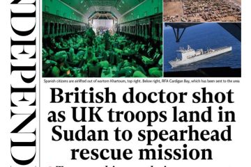 Daily Mirror reports Downing Street is urged to rescue 4,000 Britons, including 71 NHS doctors, trapped in Sudan.