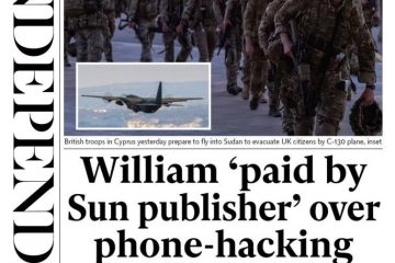 The Independent reports that lawyers for the Duke of Sussex claim Prince William was paid a large sum by Rupert Murdoch’s newspaper business to settle a phone-hacking claim.