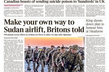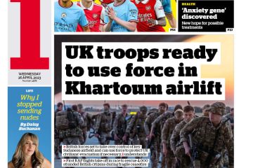 The Times highlights the prime minister’s warning of a critical 24 hours ahead as stranded Brits leave Sudan on evacuation flights.