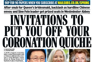 The Daily Mail covers backlash over coronation invitations sent to Chinese VP Han Zheng and Sinn Fein’s Michelle O’Neill.