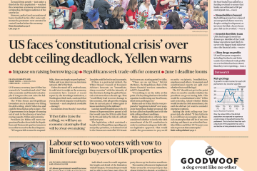 The Financial Times covers US Treasury Secretary Janet Yellen’s warning of a potential “constitutional crisis” and economic catastrophe due to the debt ceiling issue.