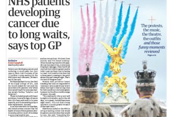 The Guardian highlights concerns from the chair of the Royal College of GPs about patients developing cancer and experiencing severe pain due to a waiting list of over seven million for scans and treatment.