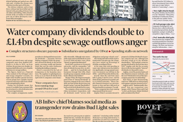 The Financial Times analyses that dividends paid by privatized water and sewage firms more than doubled to £1.4bn last year despite rising household bills and criticism over sewage leaks.