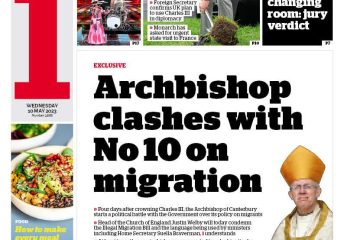 The i highlights the Archbishop of Canterbury’s plans to condemn the government’s Illegal Migration Bill.