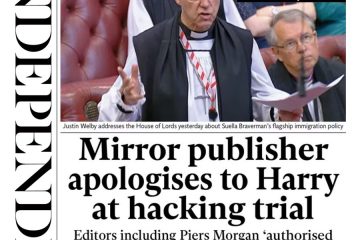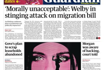 The Daily Mail covers the Tory backlash against the Archbishop of Canterbury’s criticism of government efforts to stop illegal migration.