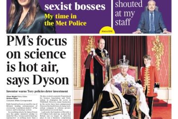 The Times features a warning from Sir James Dyson that Conservative policies are deterring investment in the science and technology sectors.