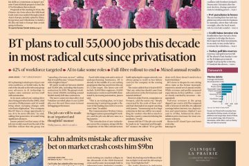 The Financial Times unveils BT’s job cut plans of 55,000, with AI replacing some customer service roles.