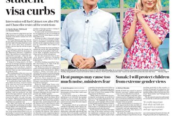 The Sunday Telegraph highlights government’s migration tsar backing a clampdown on foreign graduate visas.
