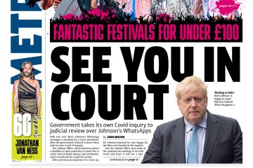 The Metro reports on the government’s move to judicial review over the COVID inquiry, specifically related to Boris Johnson’s WhatsApp messages.