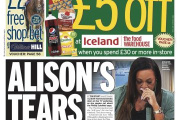 Alison Hammond shed tears while discussing Phillip Schofield, according to the Daily Mirror’s main story.