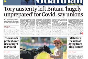 The Guardian leads with trade unions asserting that a legacy of Conservative austerity has left the UK ill-equipped for the pandemic.