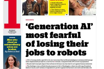 The i leads with a report suggesting that young adults express the most concern about artificial intelligence threatening their job security.