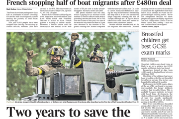 The Daily Telegraph covers Rishi Sunak’s readiness to employ the Parliament Act to advance his proposed legislation addressing small boat crossings.