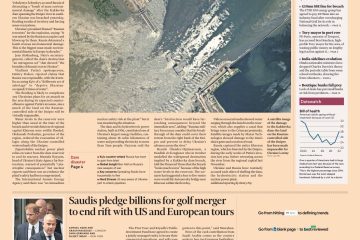 The Financial Times features accusations from Ukrainian President Zelenskyy that Russia has caused “mass environmental damage” by breaching the Nova Kakhovka dam.