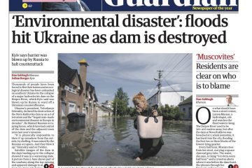 The Guardian reports the collapse of a key hydroelectric dam in southern Ukraine, forcing thousands to evacuate and instigating an ecological disaster.