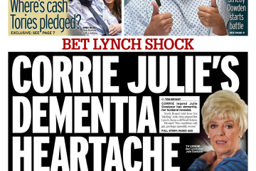 The Daily Mirror’s front page reveals that Julie Goodyear is suffering from dementia, as shared by her husband.