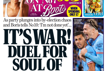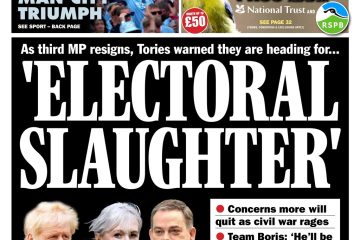 Sunday Express confidently predicts Boris Johnson’s strong return amidst Rishi Sunak’s struggle with three by-elections and Conservative party upheaval.