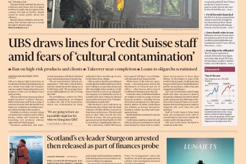 Financial Times brings attention to Swiss bank UBS’s forthcoming strict restrictions on Credit Suisse staff amid fears of “cultural contamination”.