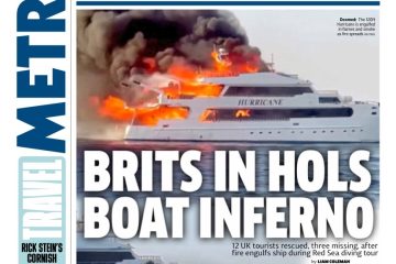 Metro reports the unfortunate incident of three British tourists missing in Egypt after a fire erupted on their diving boat.