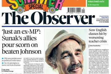 The Observer features allies of Rishi Sunak disparaging Boris Johnson post-resignation, referring to him as “just an ex-MP”.