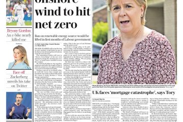 The Daily Telegraph headlines Labour’s pledge, under Keir Starmer, to advocate for onshore wind farms if victorious in the next election.