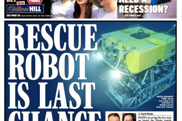 The Daily Express indicates that a deep-sea robot, capable of surpassing the Titanic’s depth, is the missing submarine’s final hope.