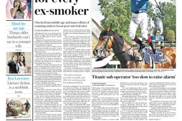 The Daily Telegraph highlights a plan to offer lung checks to anyone who has smoked from middle age, aiming to boost cancer survival rates.